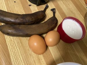 - In a blender, add the peeled bananas, the milk and the eggs.