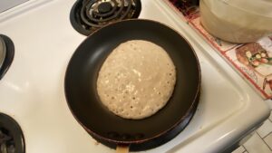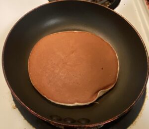 - Once the pan is hot, scoop some of the batter into the pan and allow to cook.