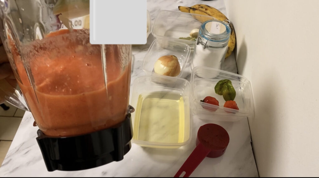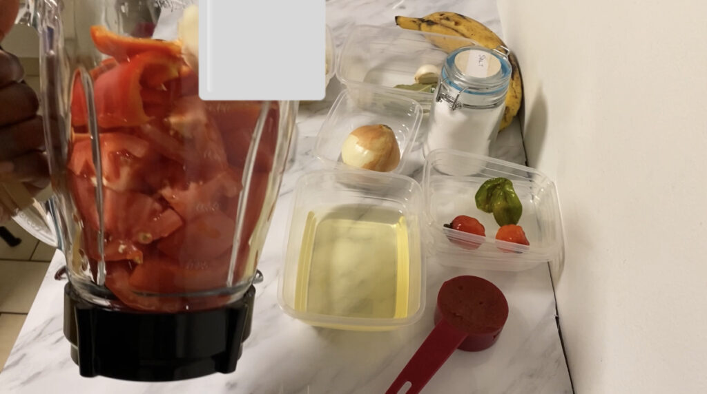 - Wash and prepare 1 onions, tomatoes, bell pepper, chilli or habanero pepper and garlic (if using cloves)