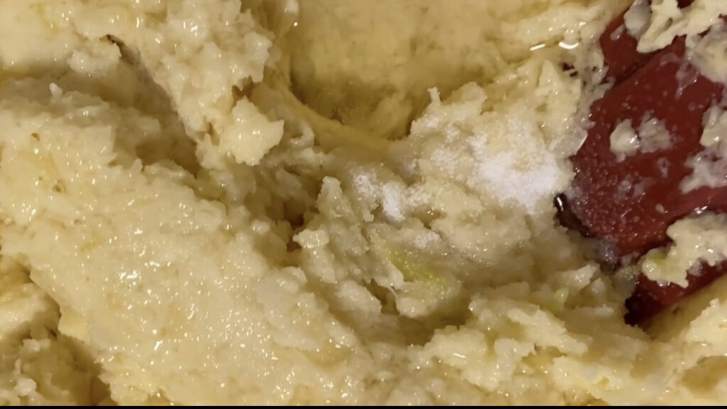 • Transfer to a bowl, add the salt and the other half of the oil and mix everything together.