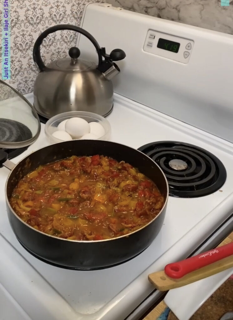- NOTE: (If you won't finish the sauce in one day, since eggs isn't the best candidate for reheating lol then, I will suggest dividing it at this point, serve some away in a bowl and save in the fridge or freezer for later/another day and when ready to eat, heat it in a pan on low to medium heat and once it is hot, break in eggs, cover and allow to poach.)