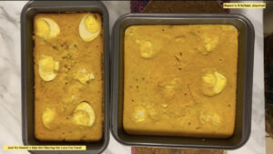 Then put that pan (the one with the beans mixture) into a bigger oven safe pan and gently pour hot water into the bigger pan (This method is called water bath), be careful not to pour water into the beans mixture.